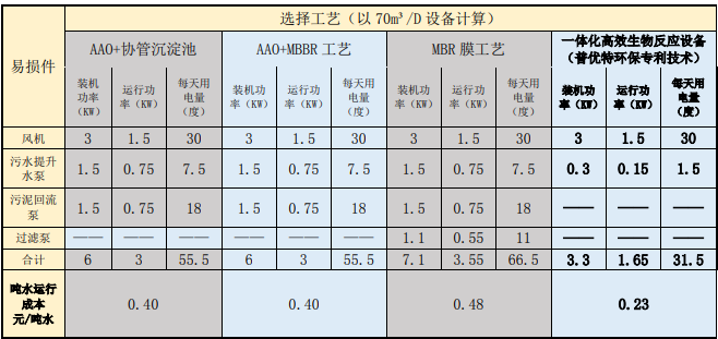 一体化高效生物反应设备采用普优特环保公司的专利技术,相比较其他常规A2O工艺、MBR、MBBR等技术,公司采用技术具有出水效果好、出水稳定、水质波动对其无影响、运行成本低、后续更换易损件费用低等优点。